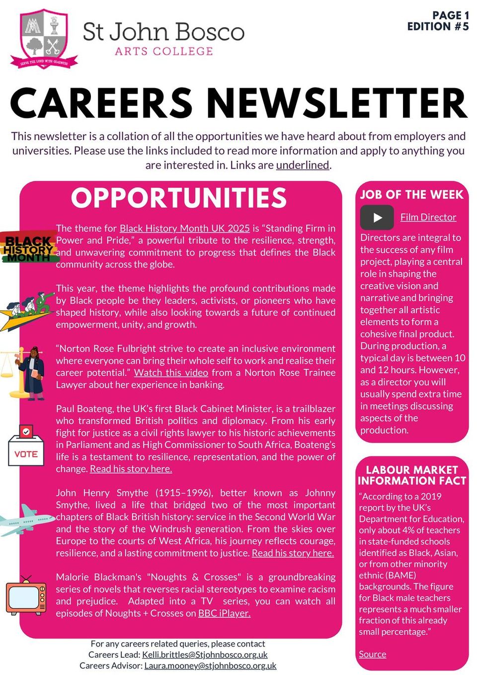 Click below image to read this weeks Careers Newsletter - a collation of all the opportunities we have heard about from employers and universities.