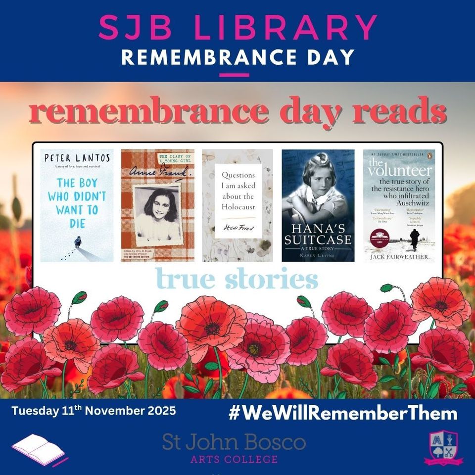 To commemorate our fallen heroes in all conflicts this 11th November, there is a book display in the library, and a Remembrance Day Reads booklist as well as bookmarks available for students (If you click on the book covers on the booklist pdf document, you can find out more information about each book).